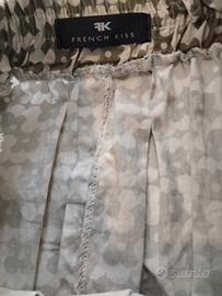 Gonna Brand French Kiss, in cotone. Misure: giro vita con elastico cm.72,, lunghezza gonna cm. 76, due tasche laterali -: Usata ma in ottimo stato - colori panna e verde oliva