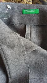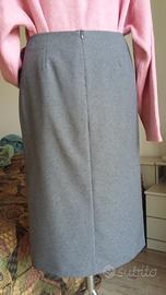 Gonna grigia originale Benetton taglia 44 con motivi di cuciture diagonali che finiscono sullo spacco che è sulla coscia sinistra. Va portata leggermente giù di vita Alcune misure di riferimento: Vita 82 cm. fianchi 100 cm. e lunghezza 67 cm. Tessuto in poliestere come dice l'etichetta. Portabile in autunno inverno e primavera. Vendo a 10 euro Spedizione da concordare