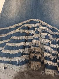 Gonna Guess in jeans avvitata e svasata, parte finale con balza i,cerniera laterale .