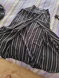 gonna in cotone nera a, righe bianche, con apertura anteriore, lunghezza sotto il ginocchio