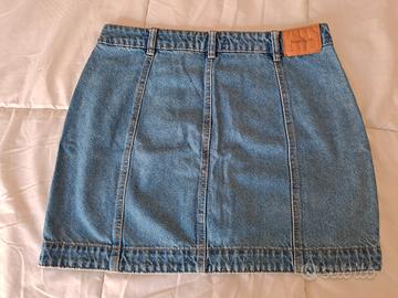 Gonna in denim, chiusura a bottoni , tasche anteriori .