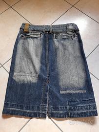 -1 Gonna in jeans con toppe. 100% cotone. Tg. S. Lunghezza gonna 55cm. Larghezza in vita 38cm. Prezzo 15 euro.