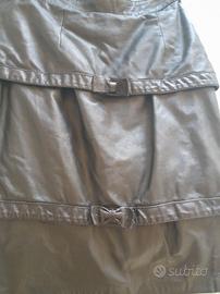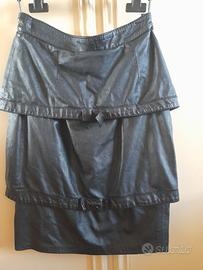 Gonna di pelle di ottima fattura a tubino sopra il ginocchio fatta a balze con fiocchetto posteriore su ogni balza, indossata è molto elegante e raffinata , usata solo poche volte e conservata benissimo.