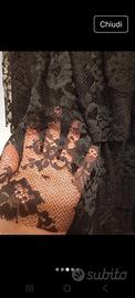 praticamente nuova indossata 1volta gonna in pizzo nero a balze lunga al ginocchio tg m elastico in vita
