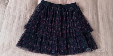 Usata 1 volta, tenuta dunque come nuova. Gonna in tulle con volant, vita elasticizzata, di colore nero con fantasia floreale; taglia 11-12 anni; marca Zara