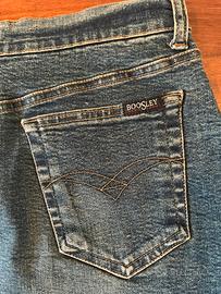 Gonna jeans Boosley taglia IT 40, lunghezza midi, 4 tasche, tessuto stretch cotone 95% elastam 5%, spacco sul retro alto 20 cm, bel colore jeans scuro, comoda, indossata pochissimo, misure vita 36 cm , lunghezza 59 cm, larghezza al fondo 44 cm.