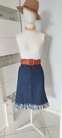 Gonna jeans con frange tg S 2 tasche frontali. Max Mara gruppo Intred. Smarchiato