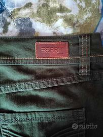 Buona vestibilità, indossato poche volte, 90% cotone, taglia M, lunghezza 45cm., colore verde bosco, con tasche avanti e dietro trapuntate di giallo ocre, con passanti per cinture anche larghe, cerniera lampo 7 cm e bottoni a borchia imbruniti e cesellati.