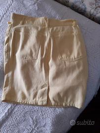 Gonna in cotone jeans giallo chiaro Nicoletta Ruggiero. Con bottoni in tinta giallo madreperla su tasche e bottone chiusura. Taglia 46. Spedizione non inclusa.