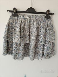 Vendo gonna corta Kocca taglia XS, fantasia floreale con toni di blu, beige, nero e rosa chiaro.