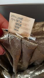 Gonna laminata (25% lame 75% seta) poco utilizzata in ottime condizioni. Modello longuette aperto sui fianchi, morbida da indossare e adatta per ogni occasione.
