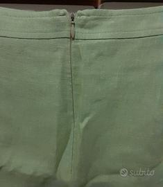 gonna 100% lino, verde lime, zip dietro, piega cannello davanti, ottimo stato, misure vita 41, lungh.60, marca CHOPIN Roma