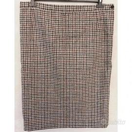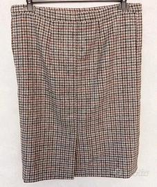 Gonna longuette sartoriale per donna, tg XL, vintage, in lana, fantasia houndstooth, pied de poule.