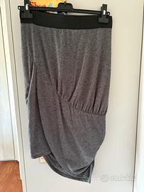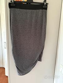 È stata indossata in poche occasioni, è ben conservata. Tessuto elasticizzato colore grigio con elastico nero, calda viscosa, la gonna è un capo invernale ma se indossato nella mezza stagione, è molto morbida a contatto con la pelle.