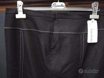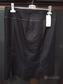 Gonna mai usata con etichetta, nera con cuciture bianche, Luisa Viola, originale. Con chiusura lampo al fianco sinistro. In foto è un po' spiegazzata ma è nuovissima. Taglia nella foto.