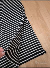 Gonna lunga a righe bianco/nero. Lunghezza 90 cm,spacco di 30 cm solo da un lato. Vita 40 cm con fascia elastica.