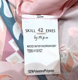 Gonna lunga a vita alta, realizzata in Italia dal brand Skills & Genes. Il tessuto è leggero e fluido, con una stampa floreale multicolor su sfondo rosa. Modello W101NORMA367 TESS W 108 5274 tessuto 100% Poliestere taglia 42 condizioni pari al nuovo