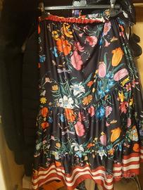gonna lunga alla caviglia sfondo nera a fiori multicolori in poliestere taglia 42