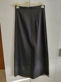 Gonna lunga nera con chiusura a bottoncini in avanti.