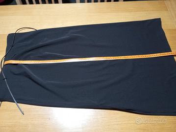 Gonna lunga marrone scuro. Chiusura laterale con cerniera. Spacco sul fondo lato sinistro. 88% poliestere, 12% lycra