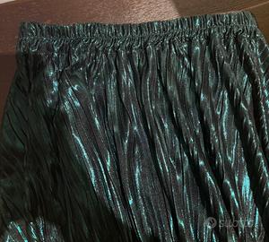 Gonna lunga color petrolio con un tessuto un po’ cangiante e plissettato. Taglia unica