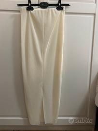 Gonna lunga a pieghe bianca/panna con elastico, ha una piccola imperfezione sulla zona dello spacco! Mai messa solo che per l imperfezione metto condizioni buone