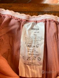 Gonna lunga con spacco laterale, marca Conbipel, colore rosa antico, effetto stropicciato, materiale cotone e poliestere, taglia M (corrisponde a una taglia 42), con elastico in vita