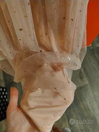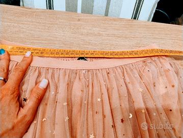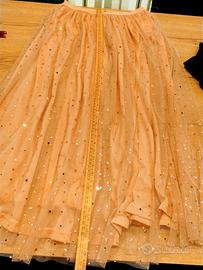 gonna lunga colore rosa anticato con doppio strato di fodera e tulle con stelline dorate, elastico in vita misure in foto in ottime condizioni
