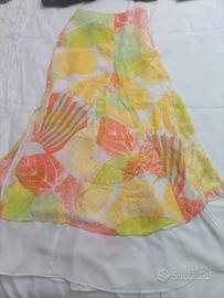 Gonna lunga a due strati, fantasia a fiori e bianco. Strato superiore 100% viscosa, strato sotto 100% poliestere.