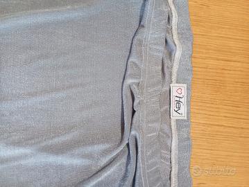 Gonna lunga sfoderata grigio chiaro. Con elastico in vita. 100% poliestere. Taglia unica.