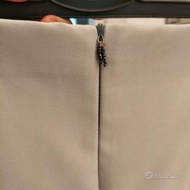 Gonna lunga con spacco color grigio perla e cerniera sul retro ha un'ottima vestibilità in quanto lungo il cinturino c'è l'elastico.