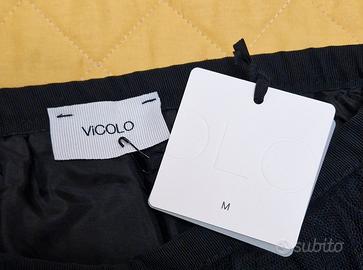 Vendo gonna lunga Vicolo in tulle nera Tg M con sottoveste lunga. Come si nota in foto uno strato ha un motivo leopardato trasparente. La gonna tg M è lunga 88 cm, mentre in vita misura 33 cm. Dietro è presente un bottone per indossarla piu facilmente anche se non è elasticizzata in vita.