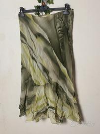 Taglio fluido e leggero, stampa effetto foliage in sfumature di verde salvia e bosco. Vestibilità morbida, ideale per la primavera e l’estate grazie al tessuto traspirante e fresco. Perfetta per look casual, raffinati o boho chic. Taglia L, condizione ottima: indossata pochissimo e senza difetti. Per domande o altre foto, scrivi pure! #gonna #klassiker #viscosa #verde #boho #primavera”
