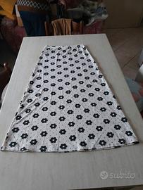 Vendo a € 3 al pezzo gonne lunghe con zip e spacco al ginocchio sul davanti di colore lilla in cotone taglia XL. Gonna lunga in cotone elasticizzato lunga bianca con stampe a margherite nere taglia unica