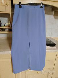 Vendo a € 3 al pezzo gonne lunghe con zip e spacco al ginocchio sul davanti di colore lilla in cotone taglia XL. Gonna lunga in cotone elasticizzato lunga bianca con stampe a margherite nere taglia unica