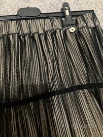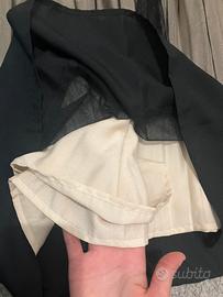 - Tessuto in tulle nero sovrapposto a un sottogonna beige.