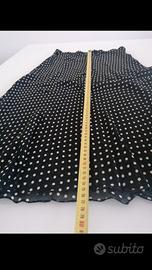 Gonna lunga a pois nera e bianca, trasparente, non foderata.