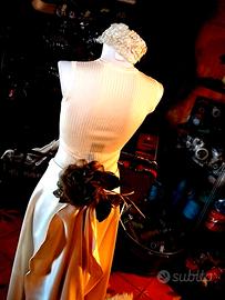 studio moda design vende gonna lunga di raso di seta con strasciso e possibilità di rialzarlo con effetto primi 900 taglia 42 color avorio molto bella da utlizzare anche dopo il matrimonio per verimoni da abbinare con varei cose a scelta...