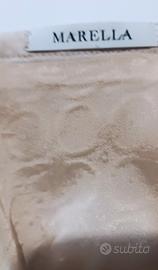 Gonna con tessuto a lavorazione Sangallo di Marella. Tg. 42 Misure: vita cm. 39, bacino cm. 46, fondo cm.46, lungh. cm 54.Tutta foderata.