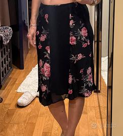 Bellissima gonna Max&Co. nera in viscosa con inserti in pura seta a fantasia floreale. Modello morbido e asimmetrico, taglia 38 EU (42 italiana). Perfetta. #flowerpower #floral #maxandco #puresilk #madeinitaly