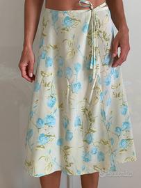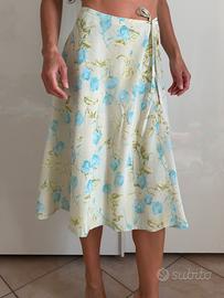 Gonna midi Blunauta 100% pura Seta ( silk )Fantasia Floreale nei toni dell'azzurro su fondo crema. Modello Longuette scivolata, lunghezza sotto il ginocchio , perfetta per cerimonie o look chic quotidiani. Misura 42 ma è aggiustabile su qualsiasi misura perché è a portafoglio io per esempio sono una XS E nuova senza cartellino Pagata 149 euro #silk #soie #seta #matrimonio #evento #party #luxury #floreale #gonnaestiva