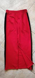 Sul retro piccola cerniera rossa che chiude fino al fondo o che si apre fino circa a metà gamba per aprire uno spacco.