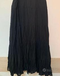 Gonna midi (a campana) di colore nero in acetato. Adatta alla taglia 54 (XXL). La lunghezza della gonna è di circa 85 cm, il girovita è di circa 47 cm, la cintura è elasticizzata per garantire comfort e libertà di movimento. Ottime condizioni.