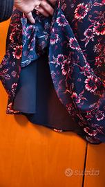 Bellissima gonna midi di Tommy Hilfiger in viscosa con fantasia a fiori 🔴🔴La taglia è 32/XXS!!! È di colore blu/viola con fiori rossi e bianchi Al tatto è stupenda Ha una sottoveste e la parte con la fantasia sopra (come si vede nella quarta foto) La lunghezza arriva poco sotto il ginocchio Purtroppo dopo averla comprata non ho mai avuto l'occasione "giusta" per metterla e ormai ho cambiato taglia 🥲