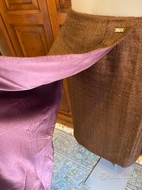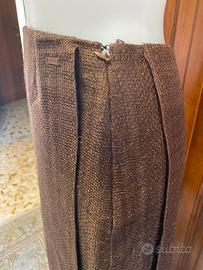 Gonna longuette Chanel in tessuto marrone. - Tessuto lavorato a trama. - Lunghezza al ginocchio. in seta con patta davanti e dietro chiusura zip a scomparsa vita cm 70 lung cm 63