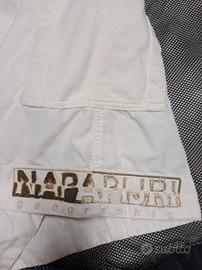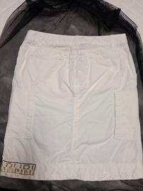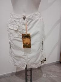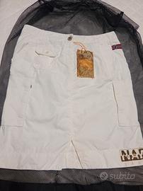 Bellissima gonna Napapijri color panna/off-white in cotone resistente, stile cargo/utility. Modello dritto con tasche laterali a scomparsa e iconico logo Napapijri ricamato sul fondo. Perfetta per un look casual, sportivo o outdoor.