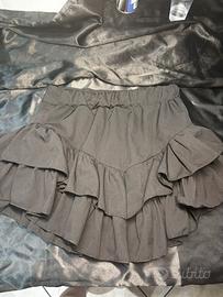 Gonna nera corta con balze, taglia unica.