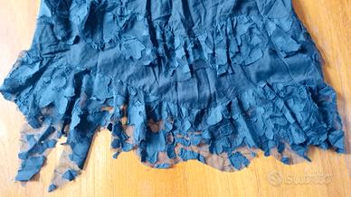 gonna nera tessuto cotone con balze in pizzo taglia 44