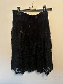 Gonna nera elegante in tulle con ricami floreali in rilievo.