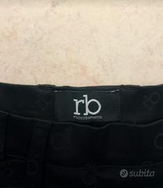Capo raffinato, ideale per outfit da ufficio, cerimonie o serate eleganti. La gonna presenta una fantasia monogram RB tono su tono, due bottoni decorativi argentati sul davanti e passanti per cintura.